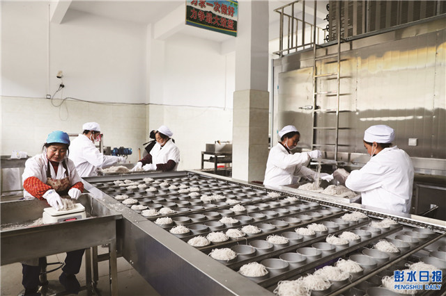 工人在紅薯加工廠忙碌著。