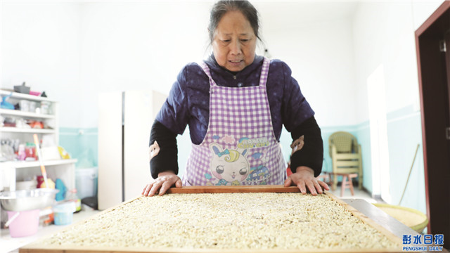 中國彭水網(融媒體記者 黃智宇 陳乾敏/文 陳乾敏/圖)麻餅是彭水苗家春節待客的一道傳統美食,春節期間,鞍子鎮紅星村村民馮佑翠忙碌著制作麻餅。