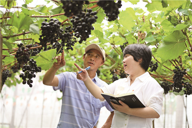 唐潛寧來到葡萄采摘園,和負責人細心交談,詳細了解產業(yè)規(guī)模、品種類型、銷售模式、基礎設施配套等情況。