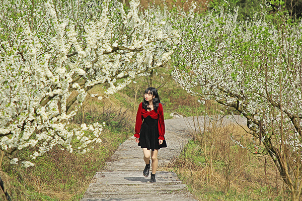 在巖東鄉青脆李基地,成片潔白的李花盛放如雪海卻又有著格外的靈動、美妙之處,無論是枝頭的含苞欲放,還是迎風的熱情綻放,都是妙不可言的風景。這些花兒悄然傲立于枝頭,小鳥、蝴蝶在花間飛舞,人在樹下,如入花海,成為游客拍照打卡勝地。