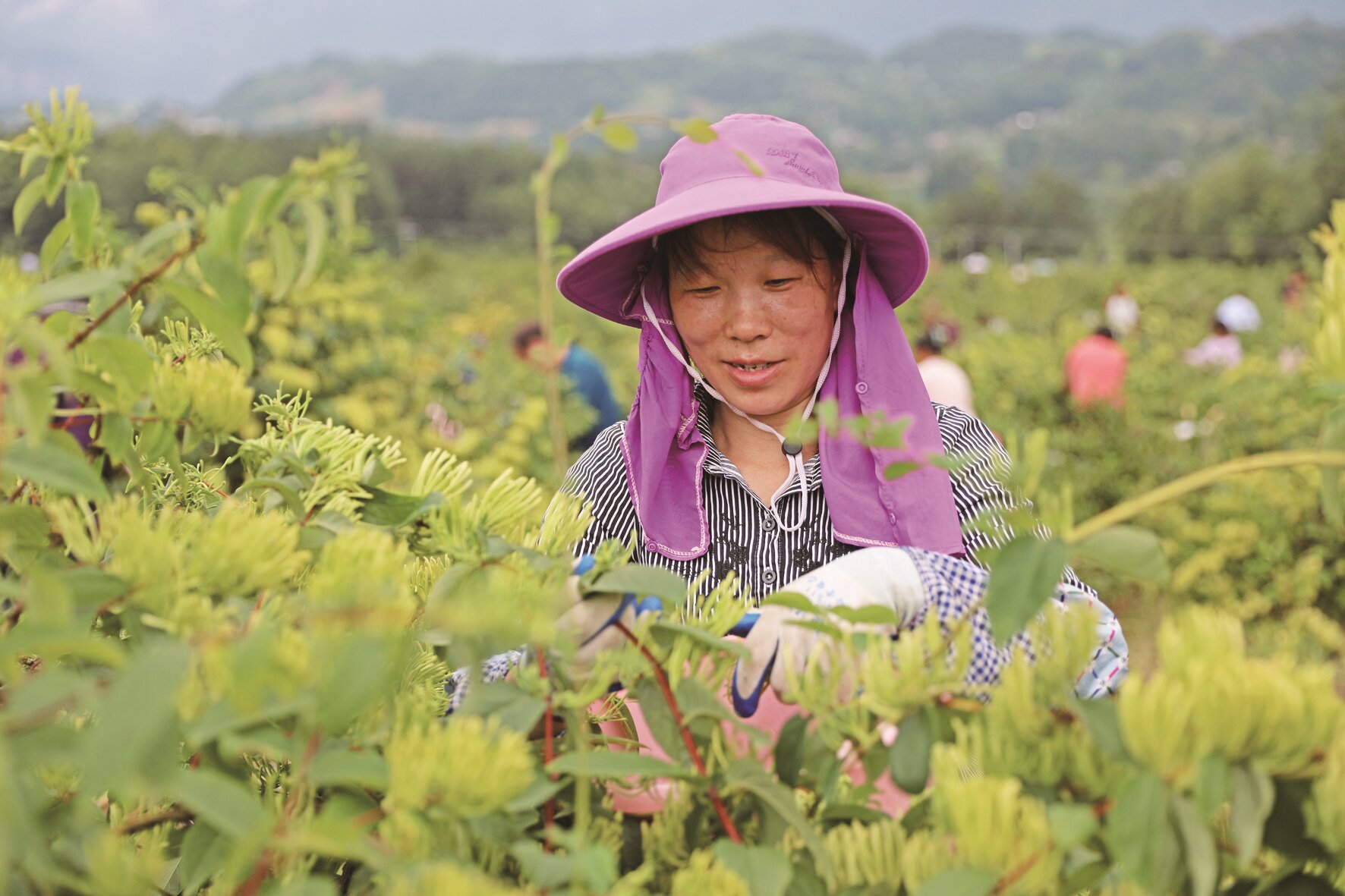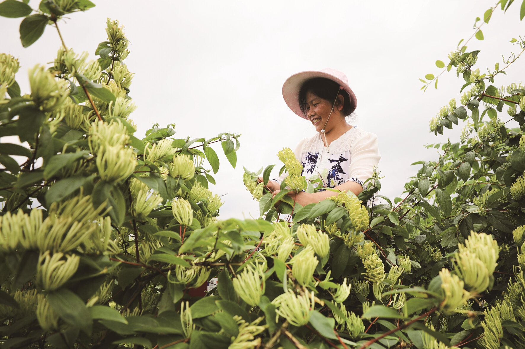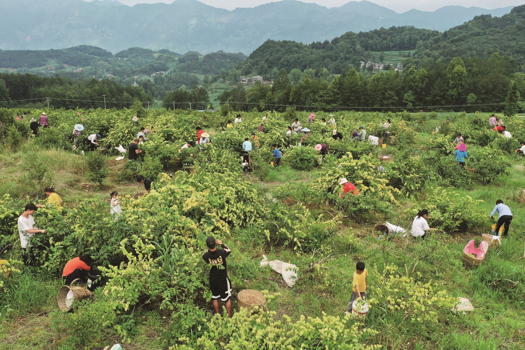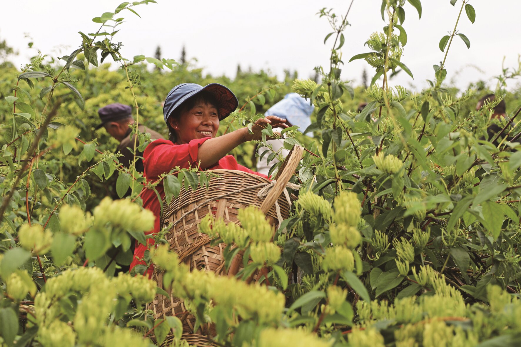 近段時間, 800余畝金銀花進入采摘時節(jié),每天吸納當?shù)?00多名村民來到基地采摘金銀花,在保障金銀花及時采收的同時,也為當?shù)卮迕裨诩议T口務工提供了便利。金銀花產(chǎn)業(yè)的發(fā)展,讓當?shù)卮迕裢ㄟ^土地流轉(zhuǎn)和家門口務工的方式增加家庭收入,金銀花真正成為了當?shù)厝罕娫鍪盏摹爸赂换ā薄?/p>