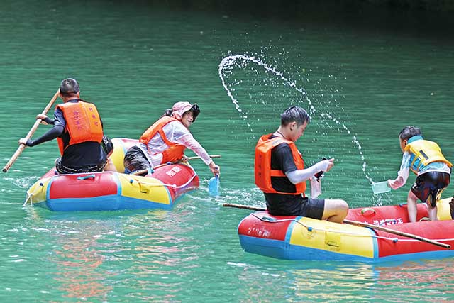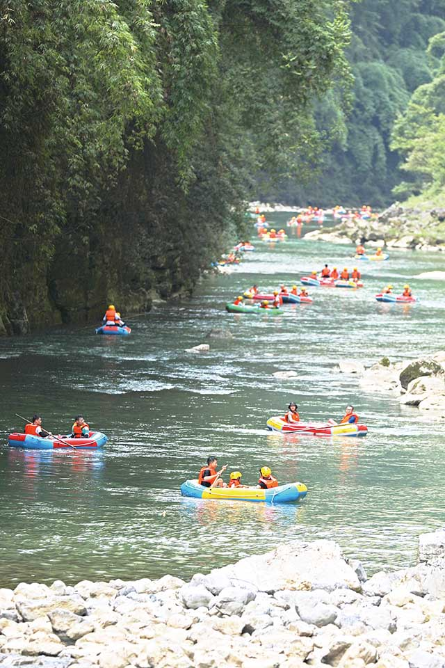 重慶彭水網(融媒體首席記者 趙勇)7月7日,在阿依河景區,游客們來到這里漂流,樂享清涼。阿依河景區是國家5A級旅游景區,景區融山、水、林、泉、峽于一體,集雄、奇、險、秀、幽于一身,對外開放的游覽項目包括峽谷聽音、竹筏放歌、碧潭戲水、浪遏飛舟、情定苗寨、青龍天梯、青龍洞和青龍谷等。這里的激流險灘、驚濤碧浪,每年夏季都會吸引很多游客前來體驗漂流的樂趣,樂享清涼。