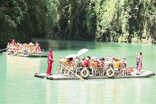 阿依河景區旅游業的發展是彭水抓實生態旅游的縮影。彭水地處武陵山區,境內山脈綿延,森林覆蓋率為62%,水系豐沛,生態條件得天獨厚。近年來,彭水牢固樹立“綠水青山就是金山銀山”的理念,堅持生態優先、綠色發展,不斷加大生態環境保護力度,讓水更綠、山更青,打造了一批生態旅游目的地,轄區內的阿依河、烏江畫廊、摩圍山等景區成為國內外眾多游客的熱門打卡地,生態旅游業的發展,有效促進了當地生態經濟的發展,真正讓綠水青山變成了金山銀山。