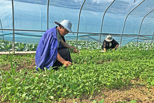 文順林在給蔬菜除草。 融媒體記者 張 影 攝影