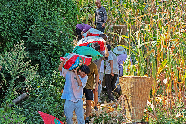 在東山村,庹彬清發(fā)現(xiàn)村里大部分家庭都是留守老人在家種莊稼,采收特別困難,他立即動(dòng)員自己的同學(xué)組建了一支助農(nóng)小分隊(duì)幫助農(nóng)戶采收玉米。