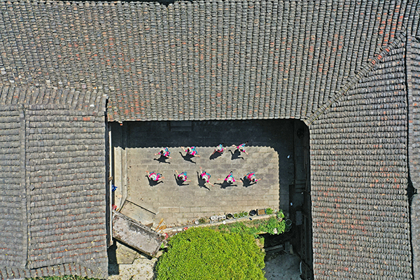 梅子埡鎮佛山村7組的古苗寨,游客身著苗族服裝,正在苗寨的院壩里學著跳苗族傳統舞蹈,體驗不一樣的苗族文化。 融媒體首席記者 趙 勇 攝影