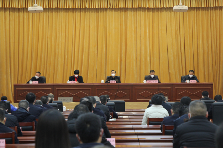 會議以視頻會議的形式召開??h委各部委、縣級各部門、各人民團體、市級直管部門、縣屬國有企業、各銀行機構主要負責同志;部分民營企業家代表在主會場參加會議。各鄉鎮(街道)黨政主要負責同志、班子成員、中層干部和各村(社區)黨組織書記在分會場參加會議。