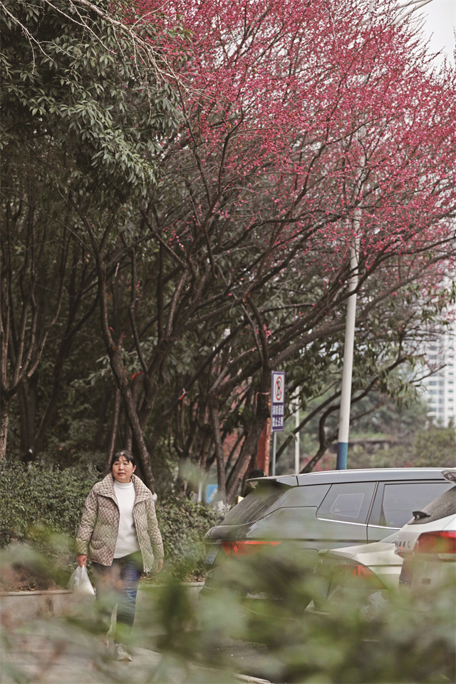 不少市民朋友聞香尋梅,倚欄賞景,那沁人心脾的紅梅花香,是春天里別樣的風(fēng)雅與樂(lè)趣。