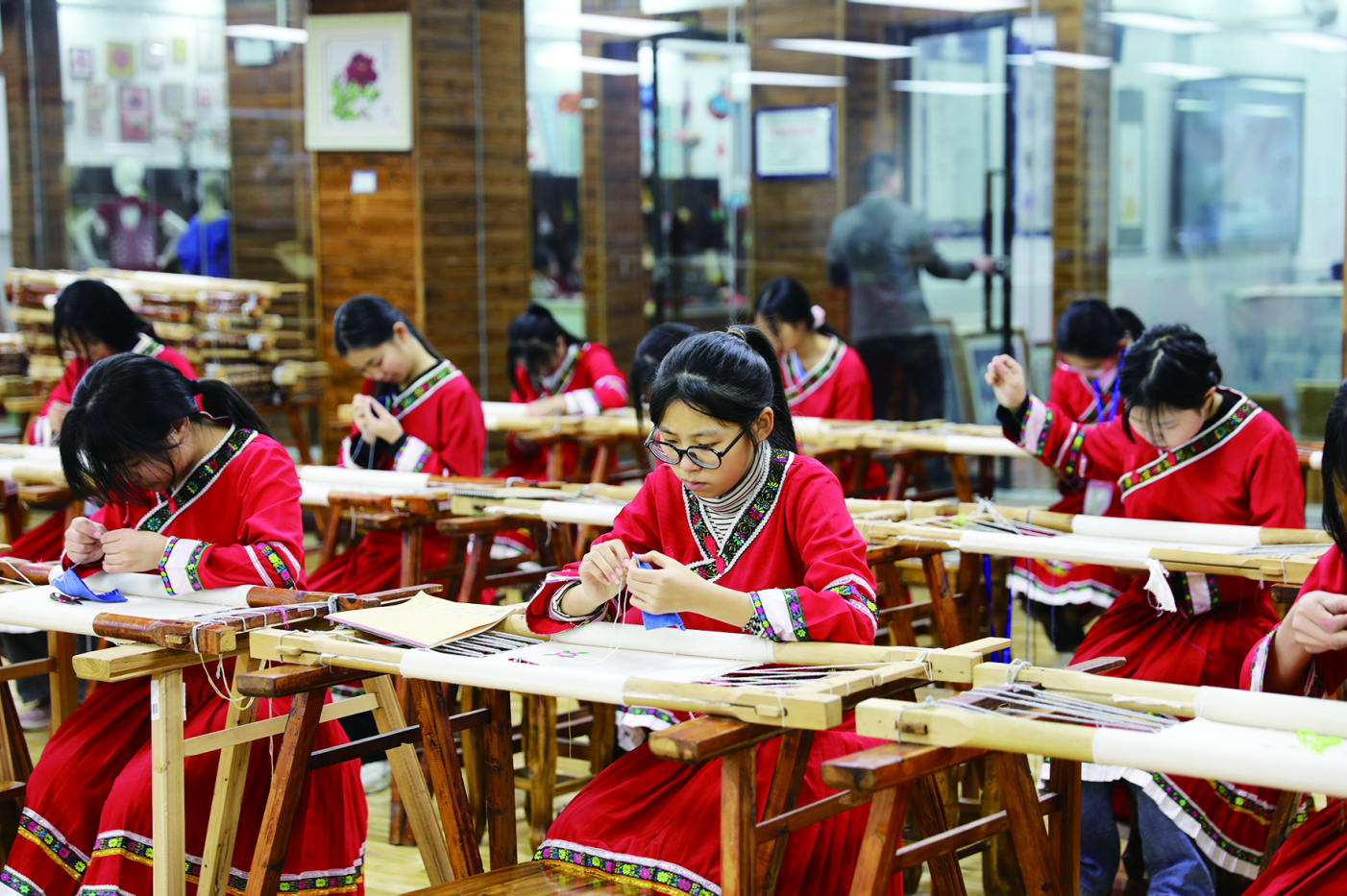 重慶彭水網(記者 李亞軍)近年來,彭水職業教育從穩規模、強內涵、促轉型著手,以“品牌興校”為發展戰略,依托彭水獨有的旅游資源和歷史文化,將民族民間文化技藝傳承作為特色項目引入校園,建構了“民族特色+”“四元融合”建設體系,走出了一條具有民族地區特色的職教發展之路。圖為學生在彭水職教中心上苗繡課。