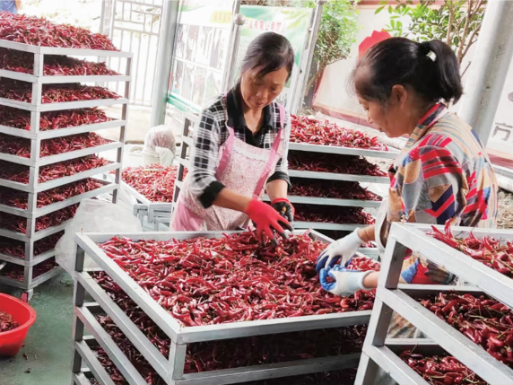 辣椒加工廠帶動周邊村民種植辣椒800余畝,與村民簽訂收購合同,以每斤不低于2.3元的價格進行保底收購,村民每畝收入近6000元。
