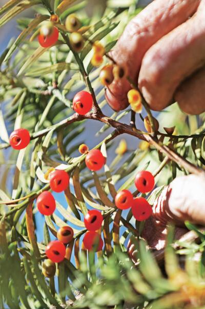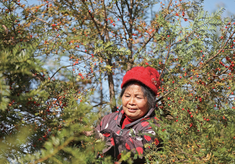 重慶彭水網(首席記者 趙 勇)11月16日,在阿依林海紅豆杉種植基地,一顆顆鮮紅的紅豆杉果掛滿枝頭,當地村民正在采摘紅豆杉果。