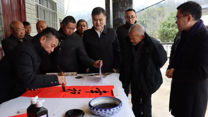 中央外辦把定點幫扶工作與同彭水八個基層支部的聯學共建結合起來,以點帶面、以黨建引領全局。調研組一行先后來到善感鄉周家寨村,鞍子鎮羅家坨村開展支部共建活動,通過實地查看、聽取介紹等方式,與大家話家常、聊變化,詳細了解支部共建開展情況。支部共建活動現場還開展了寫春聯活動,為大家書寫春聯,送上新春祝福。調研組表示,要堅持以人民群眾為主體、以激發內生動力為目標,充分發揮黨建優勢精準賦能鄉村振興,推動結對共建走深走細走實。